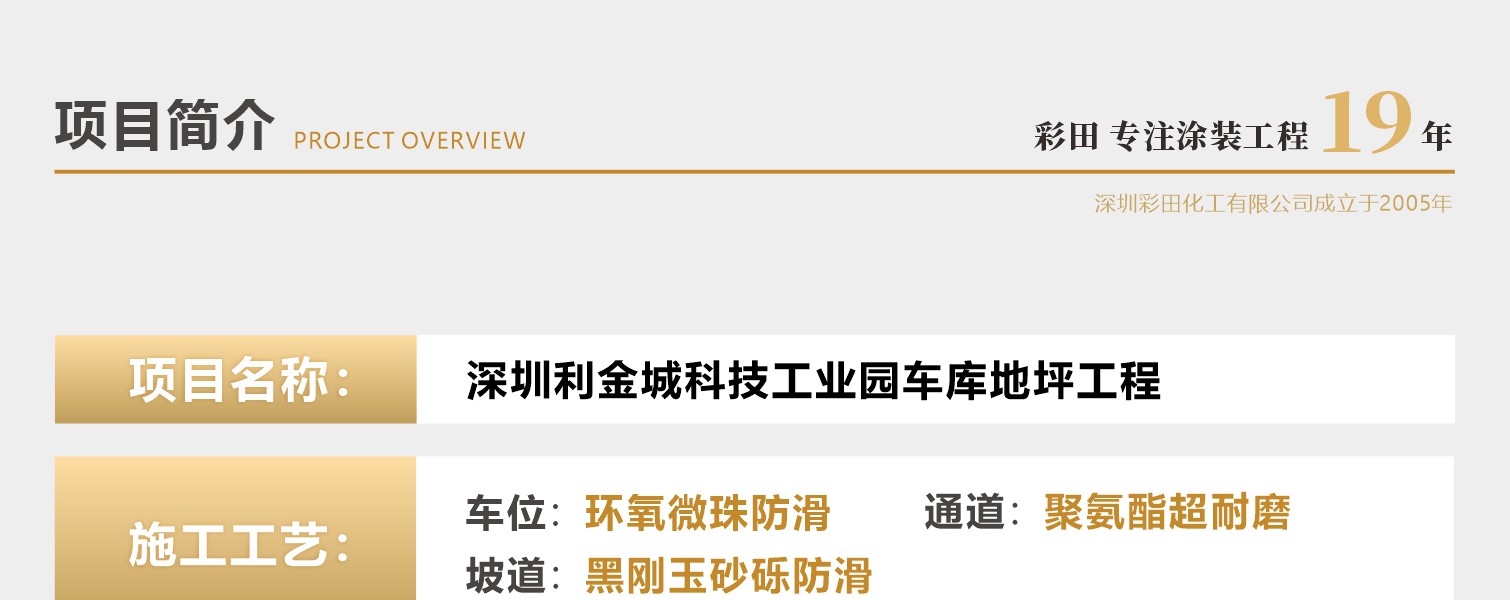 項(xiàng)目名稱:/深圳利金城科技工業(yè)園地下車(chē)庫(kù)地坪工程施工工藝:/車(chē)位:環(huán)氧微珠防滑 通道:聚氨酯超耐磨 坡道:黑鋼玉砂礫防滑施工面積:施工工期:色彩搭配方案:涂裝體系結(jié)構(gòu):