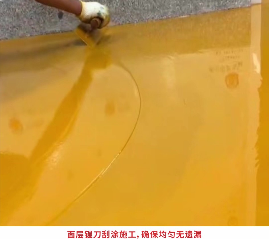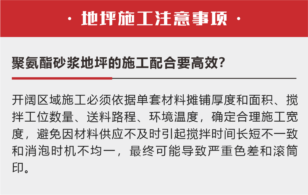 要求:要達到最好的表觀效果,整個面層施工的攪拌、攤鋪、消泡的時間和方式要盡量保持一致。完工后的表面應(yīng)該比較平整、顏色均勻、美觀,無開裂、鼓包,無大量站立目測可見針孔,允許一定色差與光澤差異;24-36小時可行人,7天完全固化。
