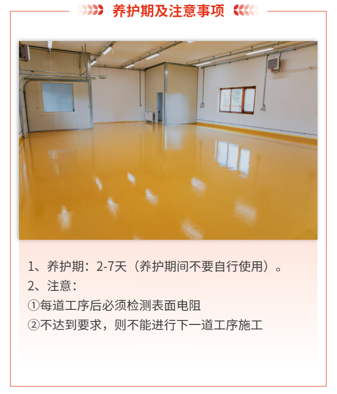 1、在防靜電自流平面涂層上做輕微打磨處理,防止表面太光滑導致縮孔等現象產生。