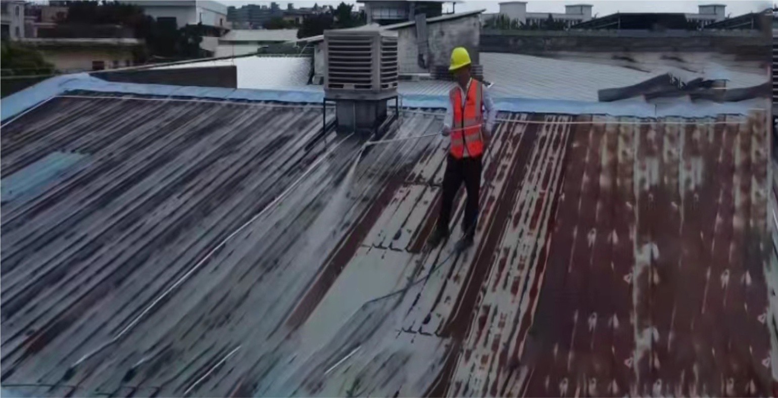 施工前認(rèn)真檢查金屬屋面,確保金屬屋面牢固、無銹蝕,無積水、粉塵、油跡、污垢物及其它松散物。不符合上述條件應(yīng)分別作如下處理:
