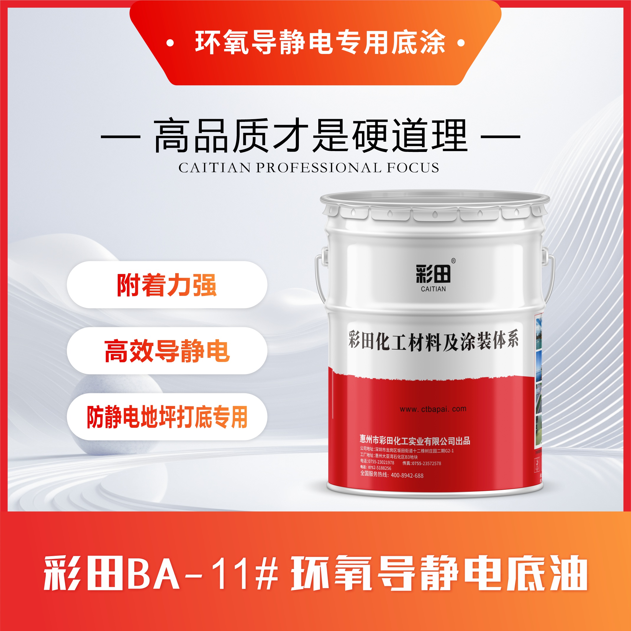 彩田BA-11#環氧導靜電底油是一種常溫固化環氧導靜電地板專用雙組份溶劑型環氧樹脂漆。