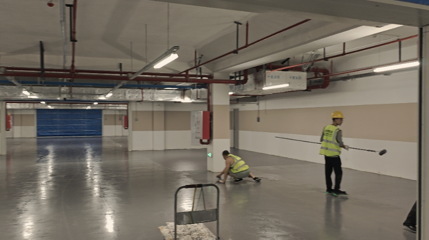 以上地坪漆產品施工圖來自彩田材料供應項目-東莞虎門-深物業濱海港灣四萬方地下車庫地坪現場實拍