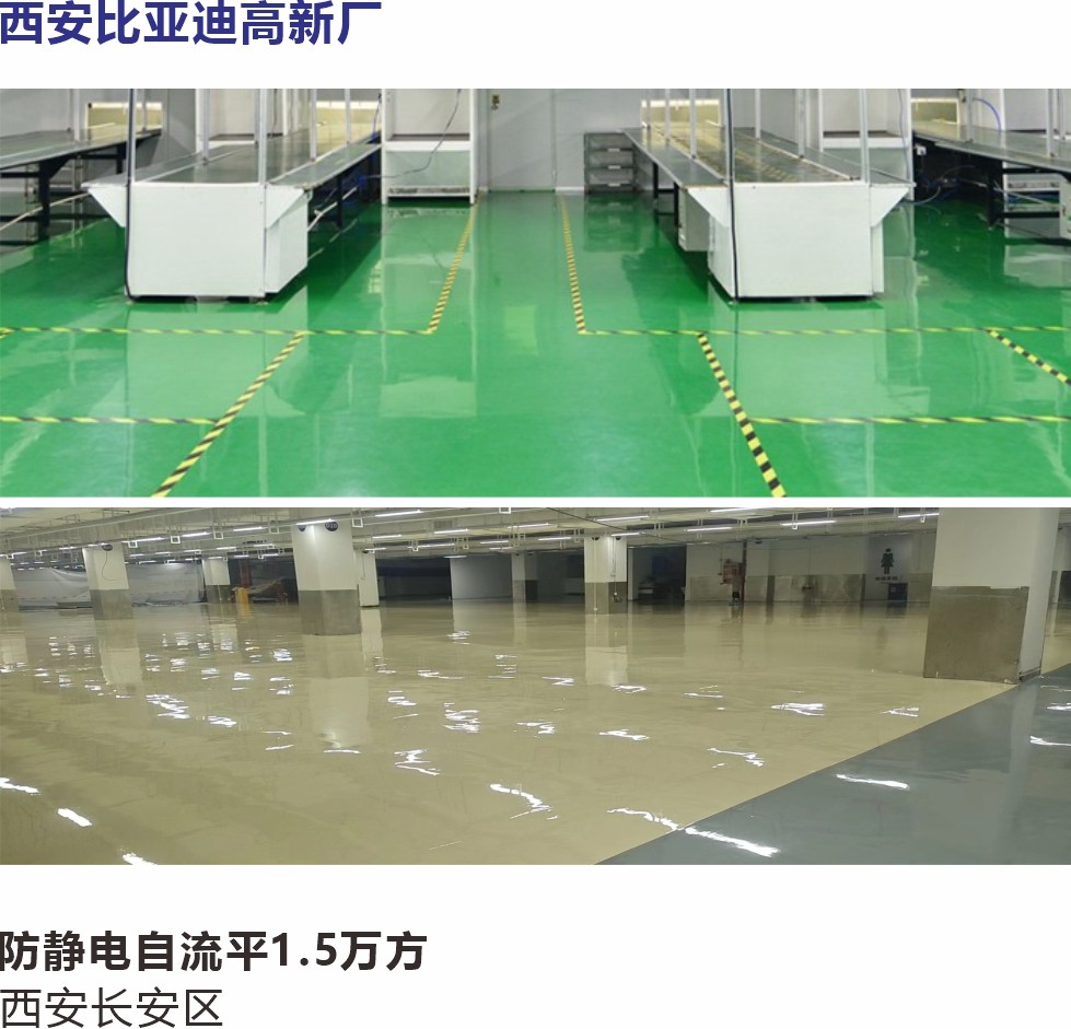 這種地坪在施工時需要鋪設導電銅箔,并使用防靜電的底漆、中涂和面漆,以確保其防靜電性能。