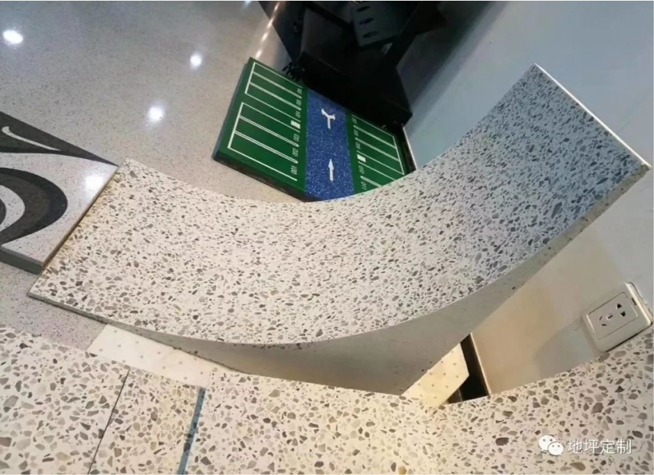 1、確保圓弧踢腳線與地坪保持水平一致或者圓弧踢腳線頂部為一條直線,鋪設前用膠帶標出高度(或用切割機切除一條直線凹槽,同樣,底角邊也切割機切除一條直線凹槽)。