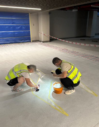 表面清潔:用洗地機清洗地面,確保無殘留物,干燥后檢查表面光滑度與密實性。