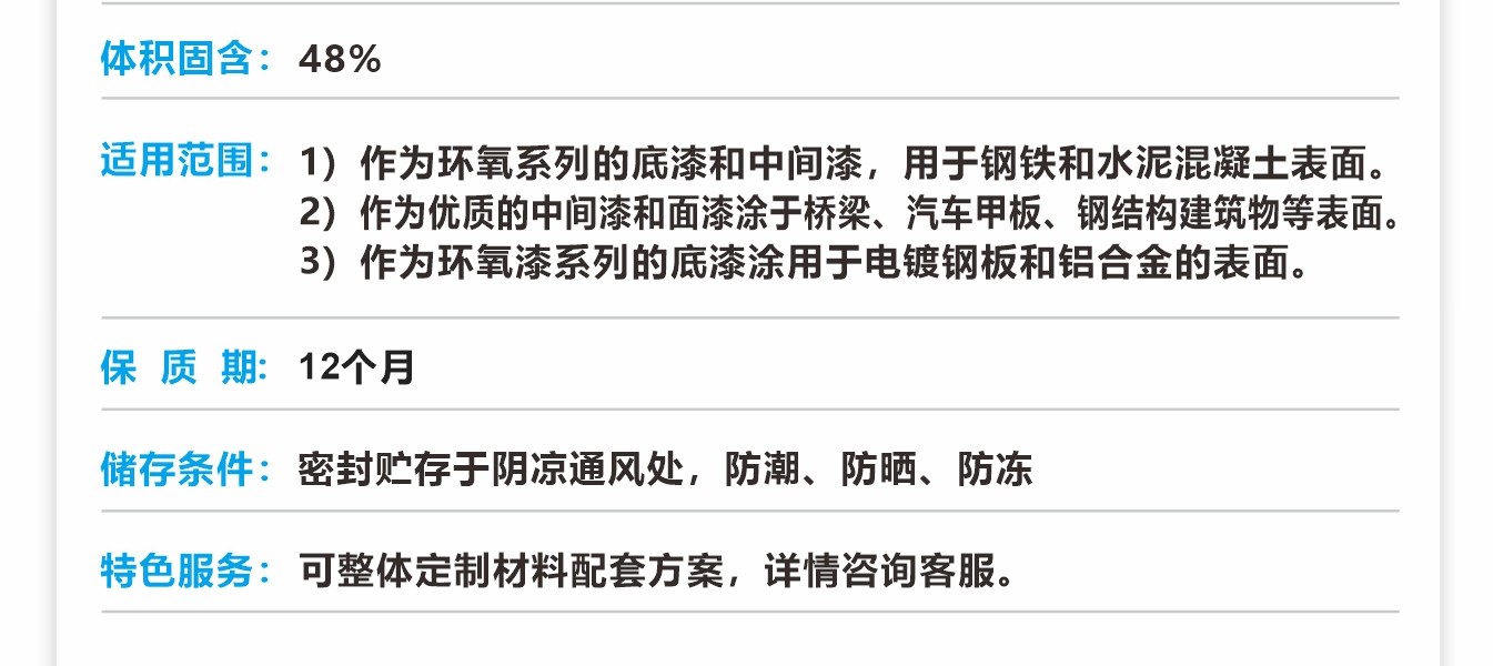 由云母氧化鐵為顏料配制而成的雙組份環(huán)氧漆,本品具有耐海水、耐腐蝕、抗碰撞、耐礦物油、脂肪烴及多種化學(xué)品性能。 適用范圍: 1) 作為環(huán)氧系列的底漆和中間漆,用于鋼鐵和水泥混凝土表面。 2 作為優(yōu)質(zhì)的中間漆和面漆涂于橋梁、汽車甲板、鋼結(jié)構(gòu)建筑物等表面。 3) 作為環(huán)氧漆系列的底漆涂用于電鍍鋼板和鋁合金的表面。
